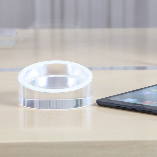Upscale transparent round flat acrylic crystal solid base flat screen alarm mobile phone display bracket depository