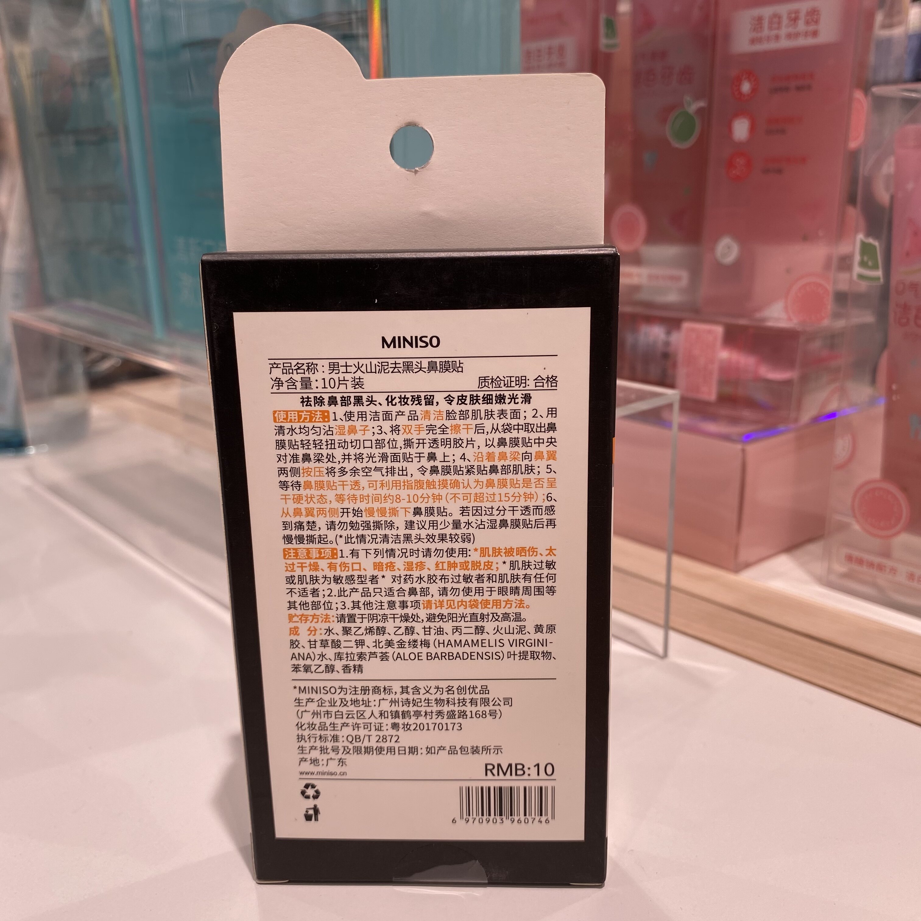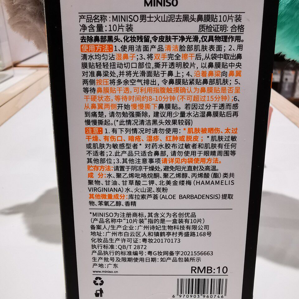 Men's volcanic mud to black head nose film paste 10 tablets ] MINISO famous nose sticker