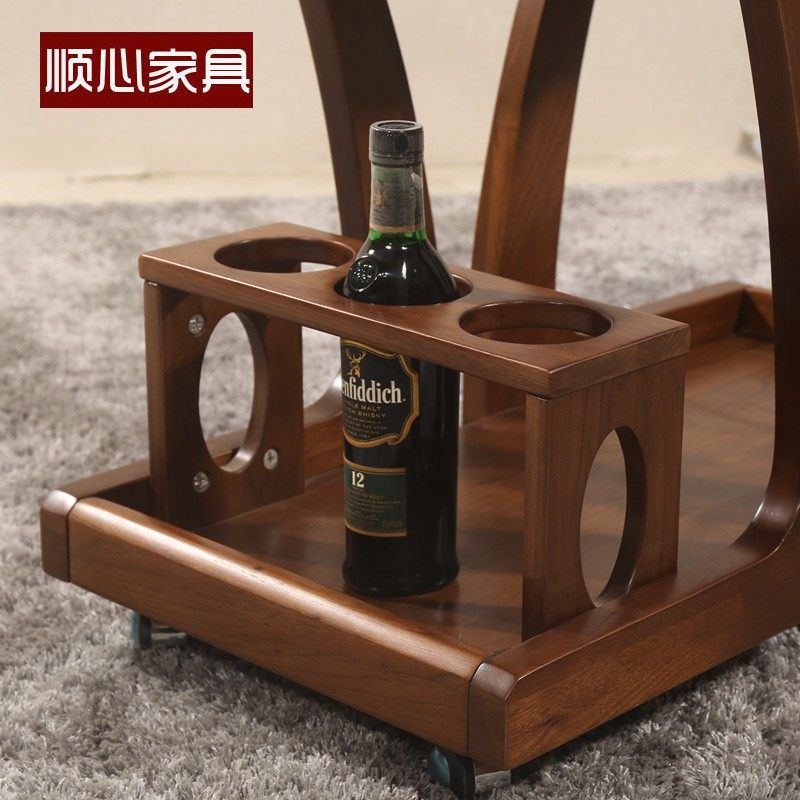 Shunxin furniture Modern Chinese dining car Solid wood dining car Living room stylish simple drink truck Walnut catalpa wood