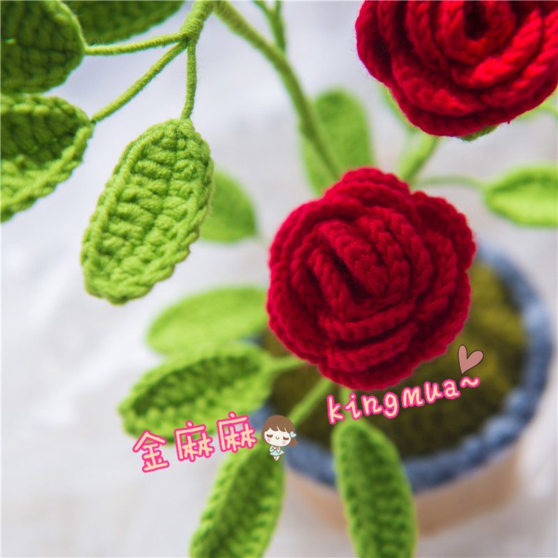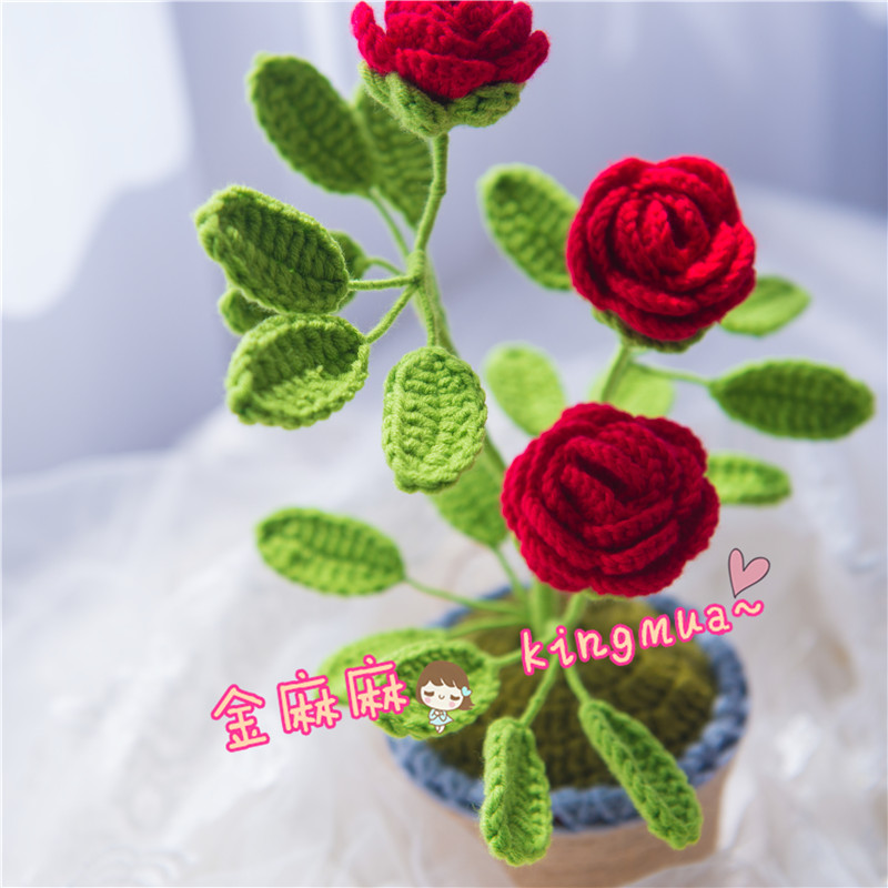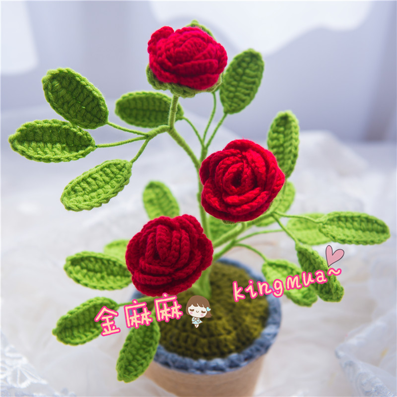 (Material Bag) Handmade Wool Thread Crochet Knitted Rose Potted Potted Mountain Tea Flower Video Material Bag-Taobao