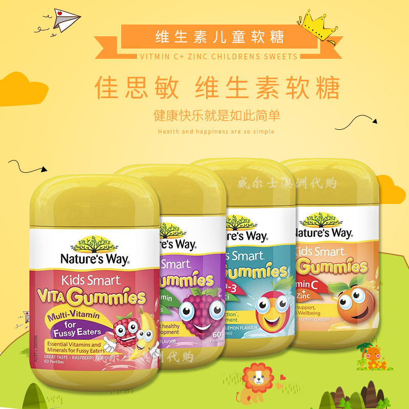 Australian Small Yellow Bottle Natures Way Child Calcium Zinc Composite Vitamin Immuno Soft Sugar 60 Grain 7 Optional