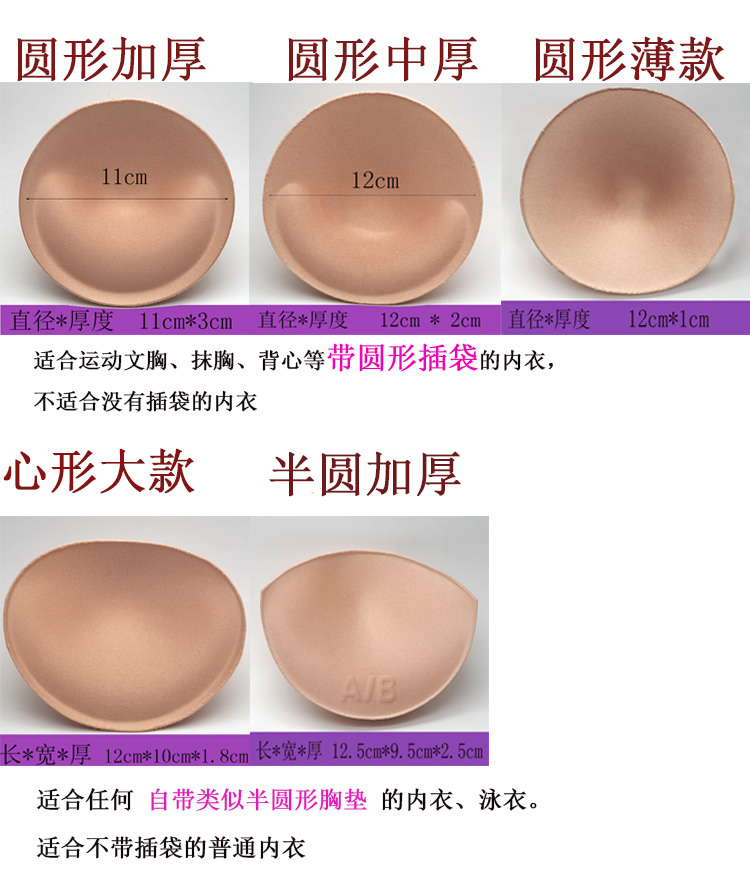 Breathable sponge chest pad insert thick round underwear pad ultra-thin small breast gathered bra swimsuit paddle
