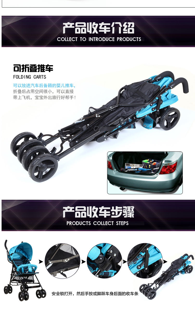 Foreign trade lightweight baby stroller umbrella car big children's stroller baby stroller children's trolley can be half-lying BB travel umbrella car