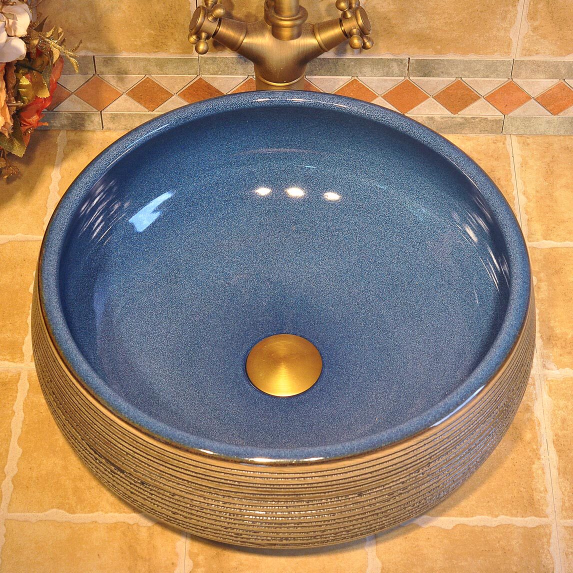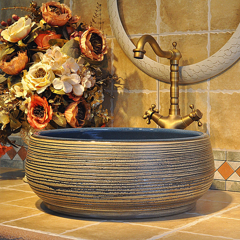 Imitation Ancient Terrace Basin Round Art Basin Wash Basin Wash Basin Washbasin Washbasin Wash Basin Carved Ceramic Line Basin