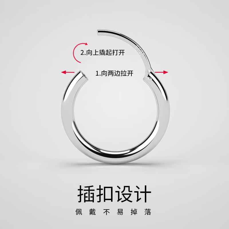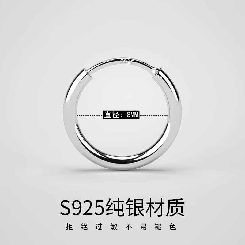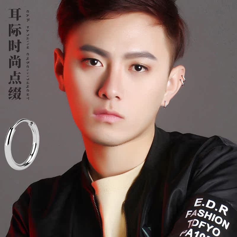 Refuse allergy 925 silver earrings men's stud earrings ear buckle ear bone ring ring Japanese Korean version personality fashion trendsetter