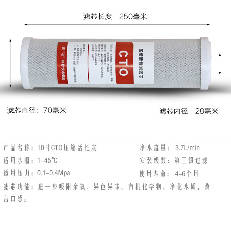 Household water purifier 10 inch filter element water purifier three-stage PP cotton particle compression activated carbon pure water machine universal accessories