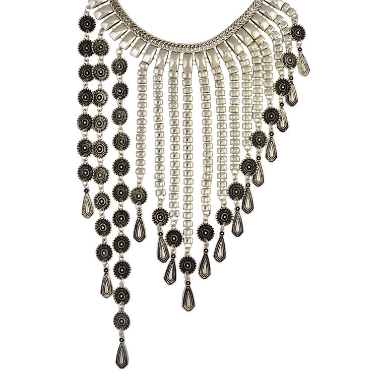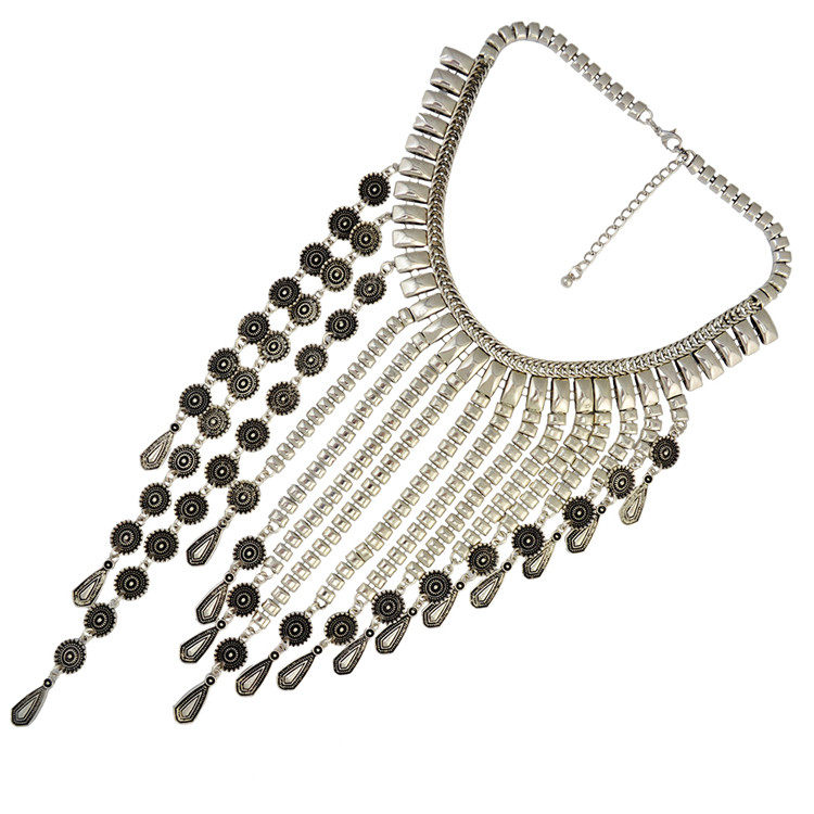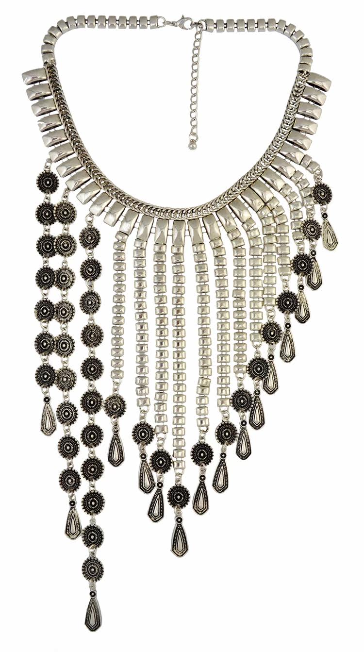 Europe and America beautiful act the role of new fashion restore ancient ways to the ancient ways of the name nationality wind carved coin tassel chain pendant alloy exaggerated necklace female