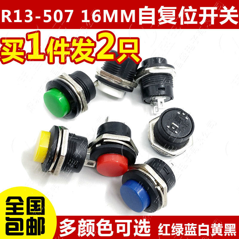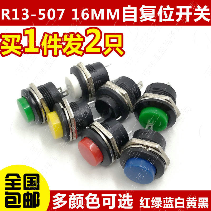 Push button switch PUSH button switch R13-507 16MM round lockless self-reset switch Red green 2