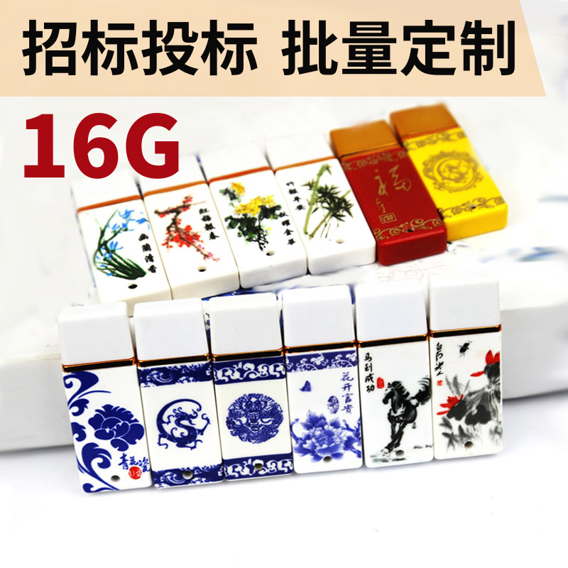 Ceramic Green Flowers 16g with Body Dish Support Gift Customize Office Business China Wind China Blue USB Accompanying Body