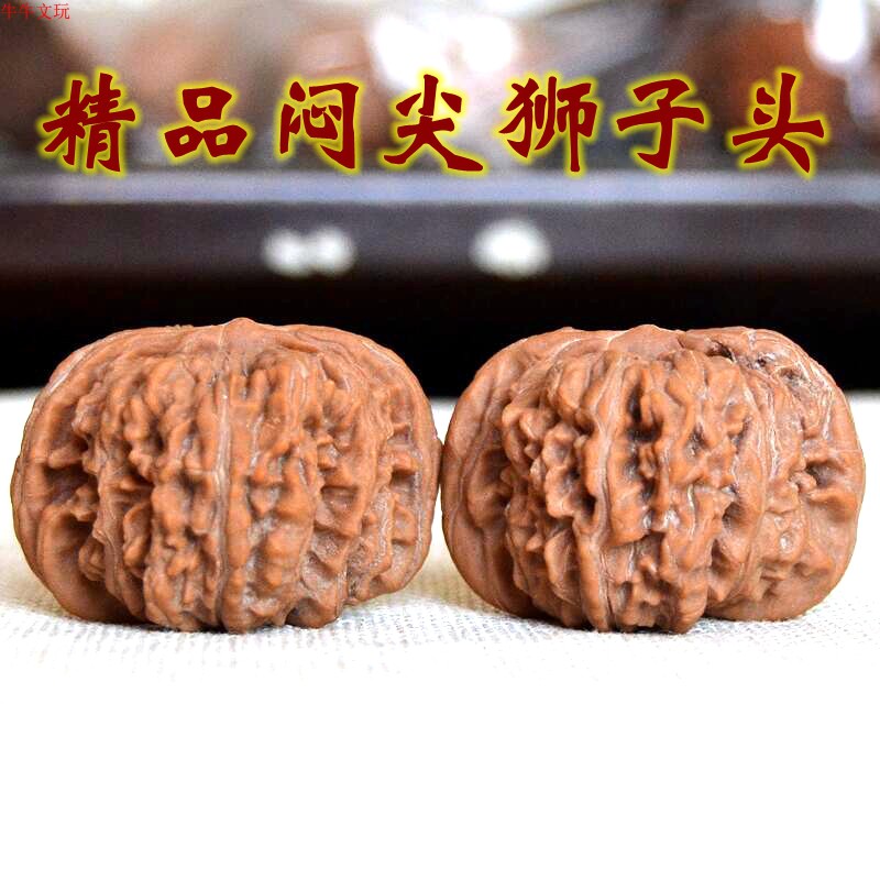 Wenwan Walnut Pinggu Four Buildings Stunning Pointed Lion Head Extra Large Collectible Boutique