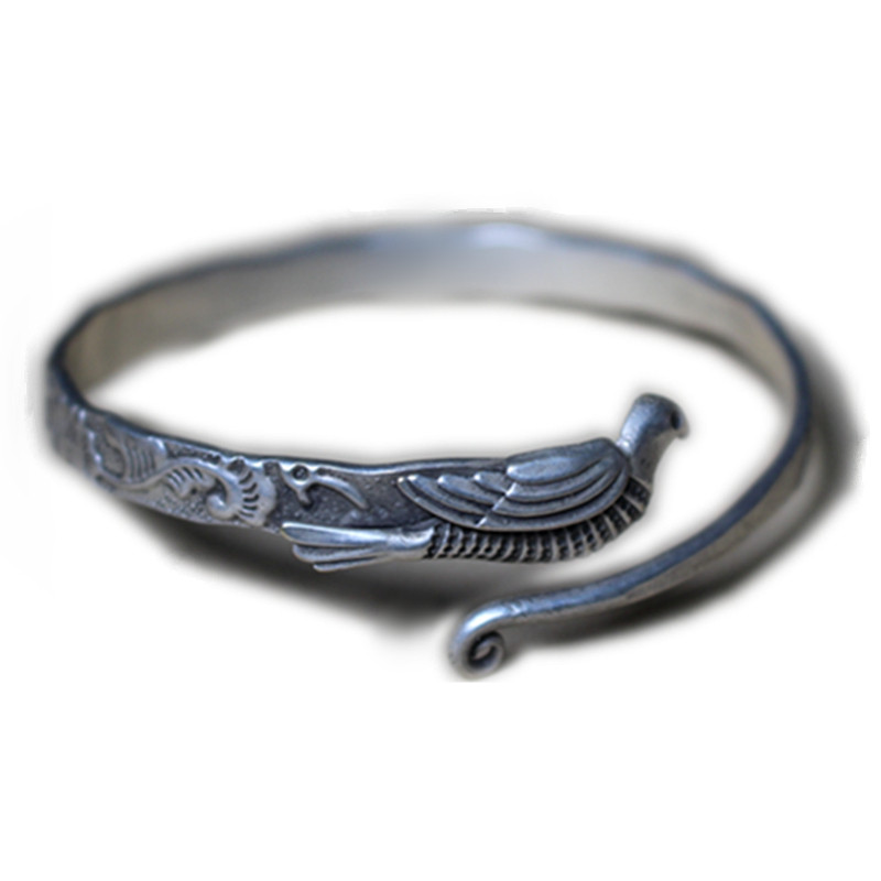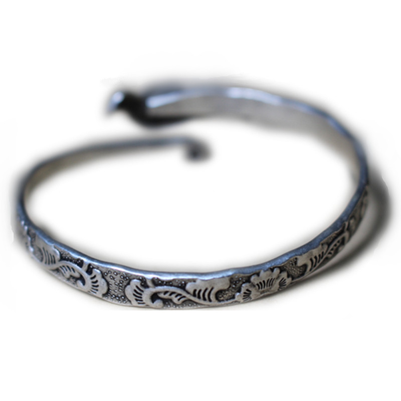 Story Flower Fragrance {Carved Old Style} Bracelet Bird and Plum Blossom Hand Jewelry Retro Old Style Female Miao Silver Bracelet