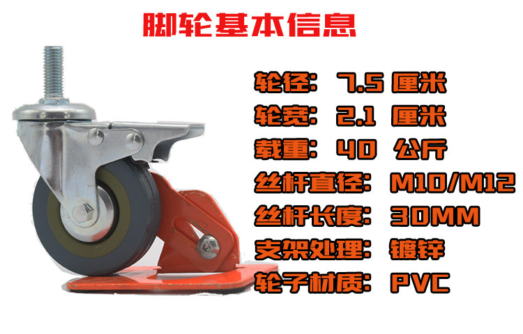 Caster 2 5 inch 3 inch screw M10M12 gray rubber metal brake hand push dining car shelf furniture industrial universal wheel