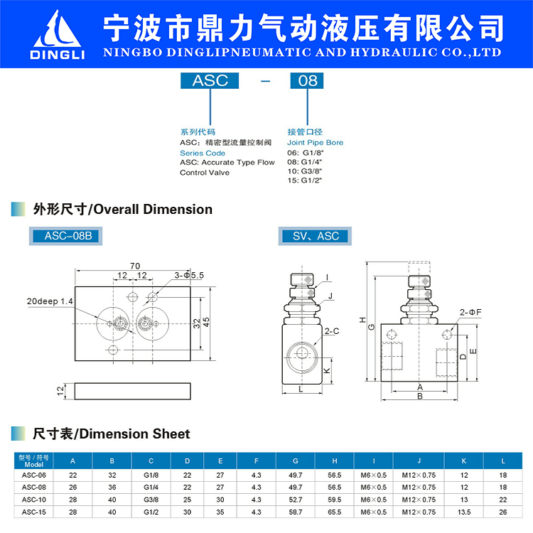 Ningbo Dingli pneumatic ASC-06 ASC-08 ASC-10 ASC-15 one-way throttle valve