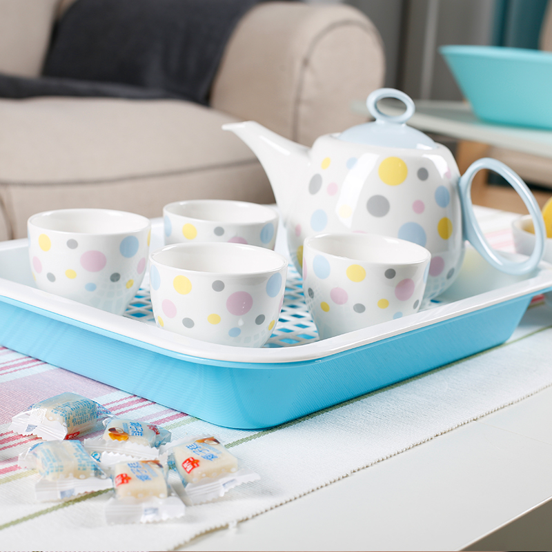 Camellia tea tray home living room double-layer tea tray tea set tea cup tray draining rectangular water cup draining tray