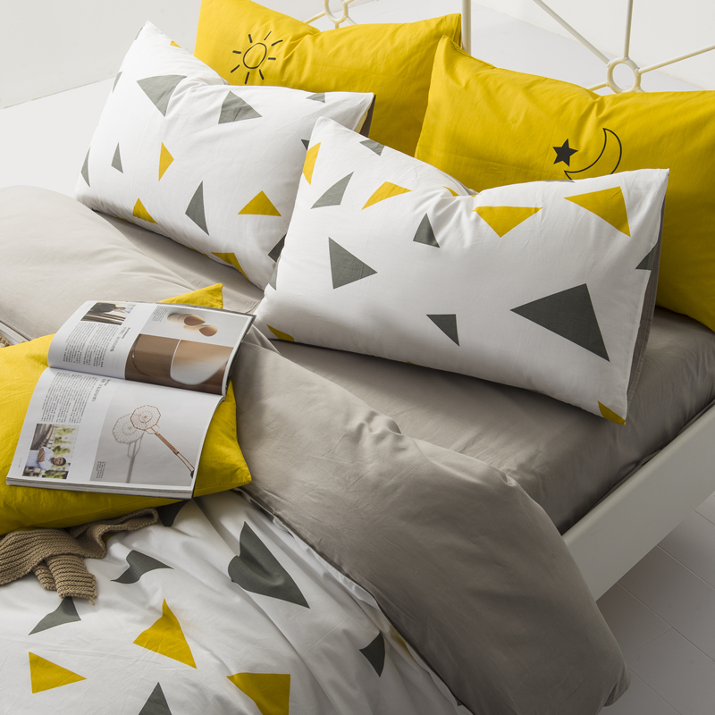 ins personality men's casual Nordic simple style Pure cotton 4 four-piece set striped plaid cotton bed Li bedding
