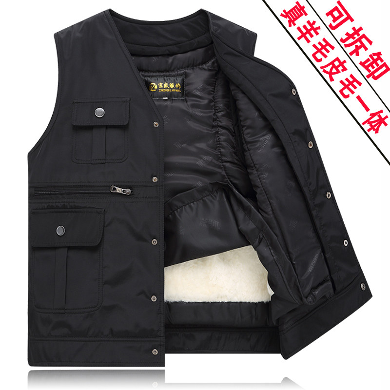 Autumn Winter Wool Fur A vest Men Middle and Old Aged Sheep Camps Shoulder Thick Cotton Vest Dad Clothing Clips