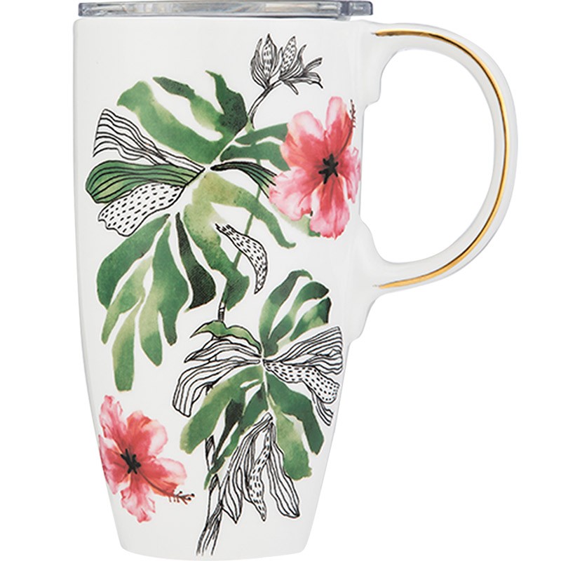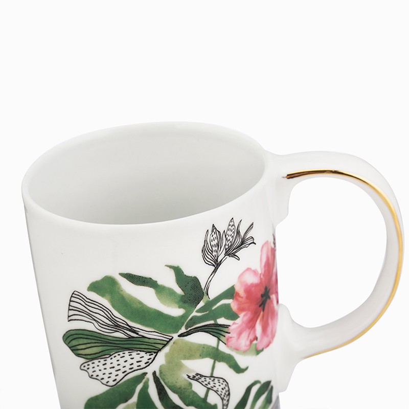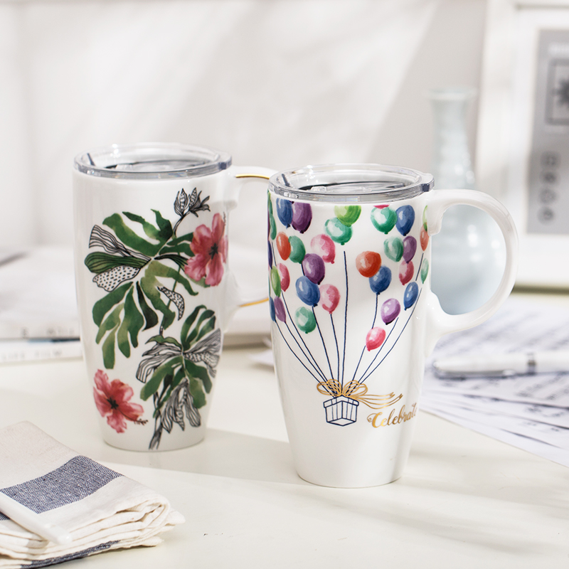 Love House Green High White Porcelain Mug Large Capacity Hand-painted Cup with Lid Breakfast Cup Household Water Cup Birthday Gift