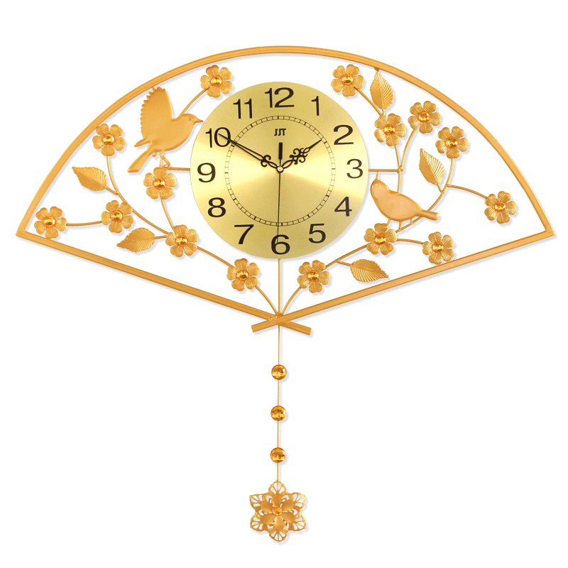 Chinese wall clock Living room Chinese style new Chinese style fan-shaped modern simple watch clock Household creative clock decoration Quartz clock