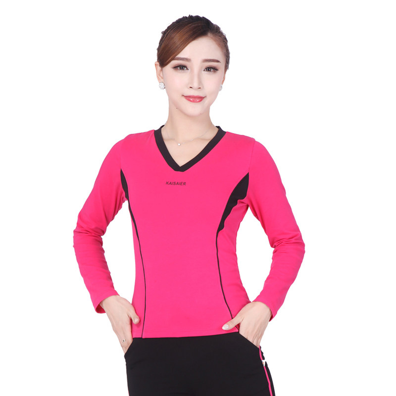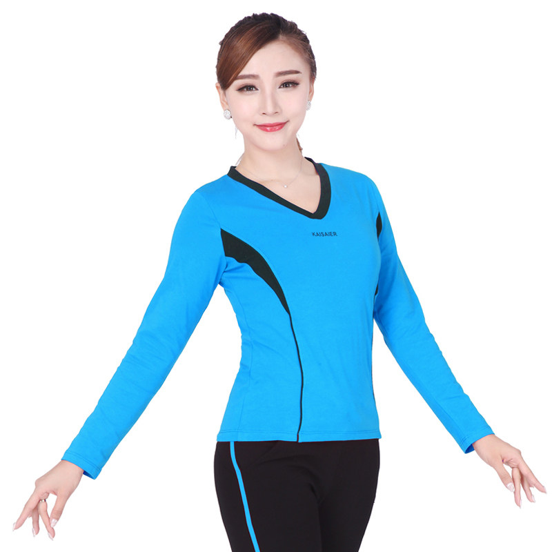 Women's four seasons sports fitness long sleeve top cotton new V-neck square dance performance clothing aerobics top