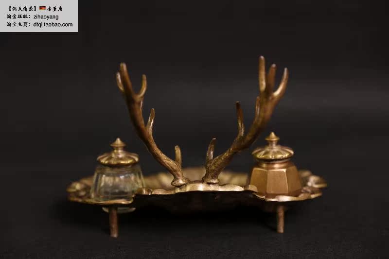 (original German product) 1880 Luc relief copper-gold pen holder ink box retro book house Decorative Genuine