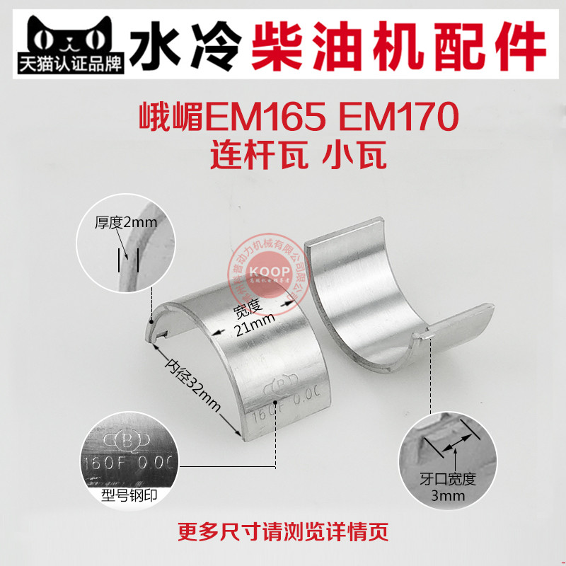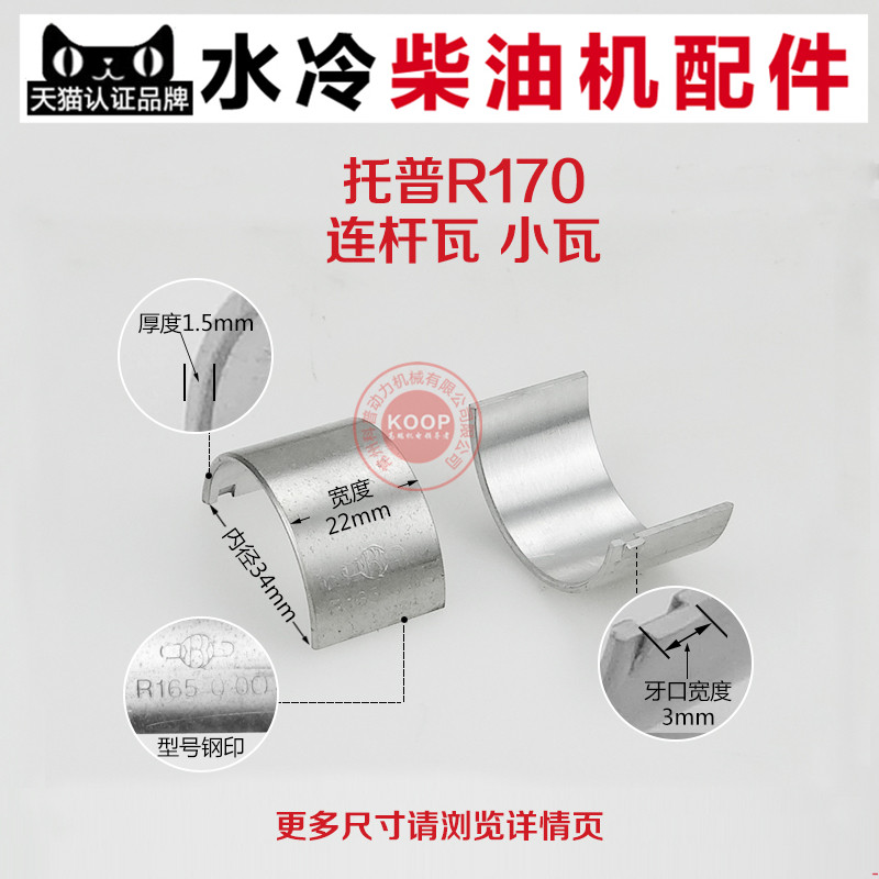 Water-cooled diesel engine parts crankshaft tile connecting rod tile Small tile R165 R170 JC EM165 3 4 horsepower