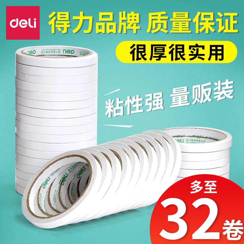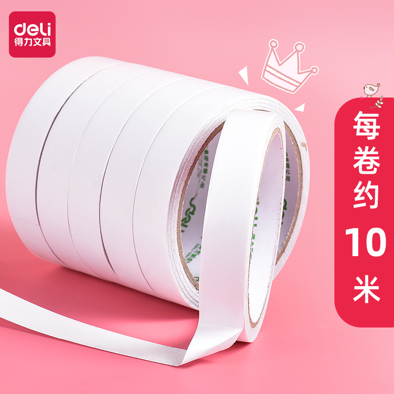 Deli double-sided adhesive high viscosity thin handmade tape two sides of strong sponge transparent non-trace adhesive cloth fixed wall sticker student children's stationery ultra-thin foam tape sticker