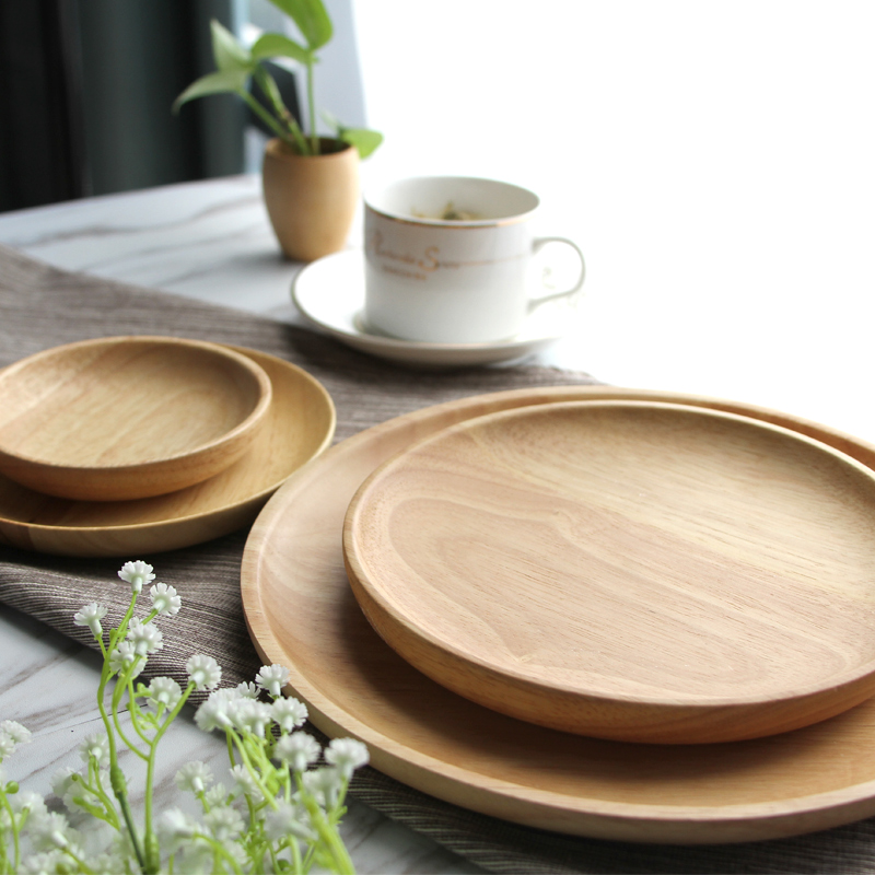 Japanese rubber wood disc log plate creative fruit plate wooden plate dessert plate tableware