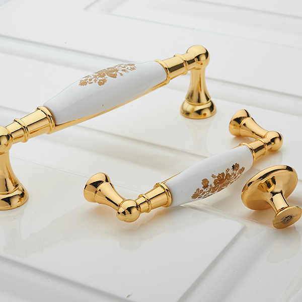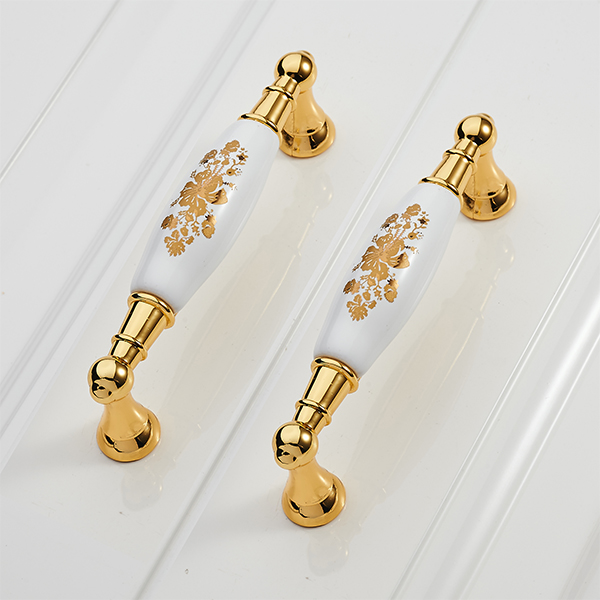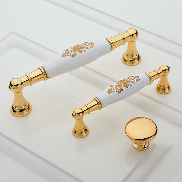 European pastoral local tyrant golden ceramic cabinet drawer wardrobe door handle rich and golden flower handle furniture hardware