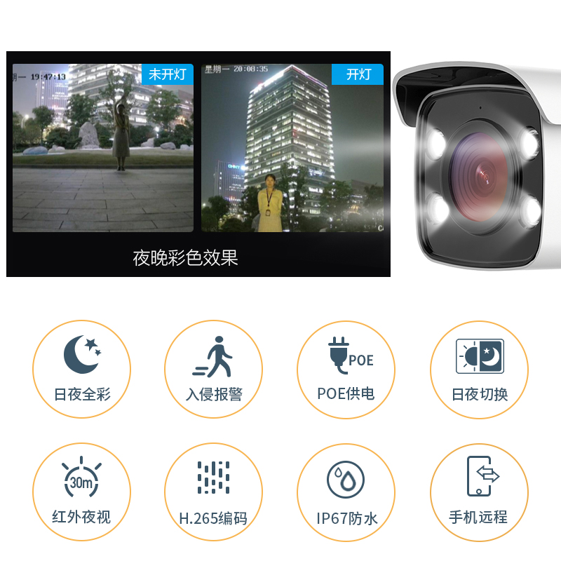 Sea Conway view camera 200 4 million POE mobile phone remote high-definition white light full-time night vision outdoor monitor