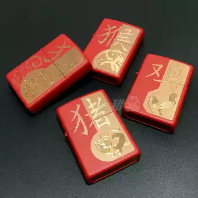 Piggy Zippo Red lacquer twelve Zodiac mouse 29929 chicken 29259 dog monkey 28955 pig cattle 49233