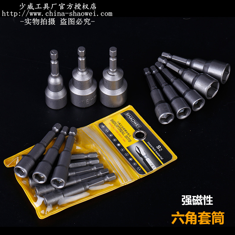 Shaowei outer hexagonal sleeve batch head strong magnetic pneumatic screwdriver electric drill pneumatic screwdriver sleeve head 5-19
