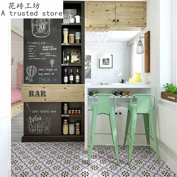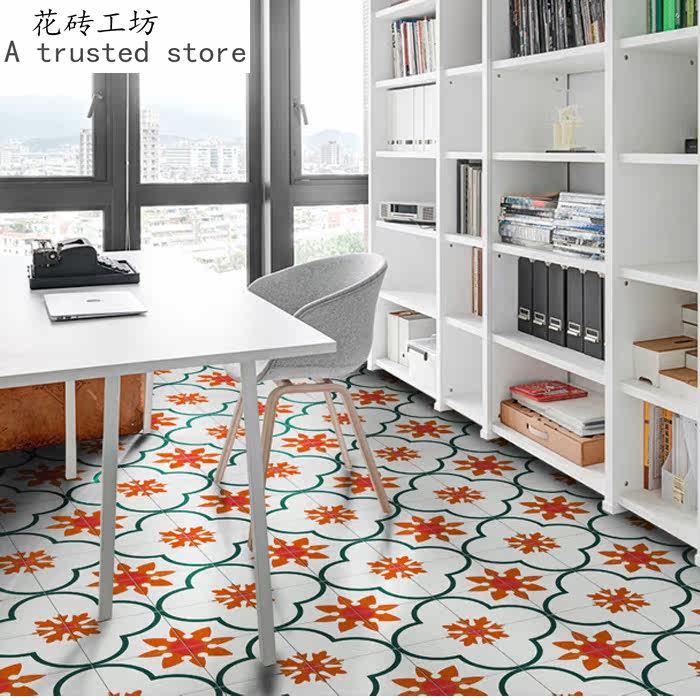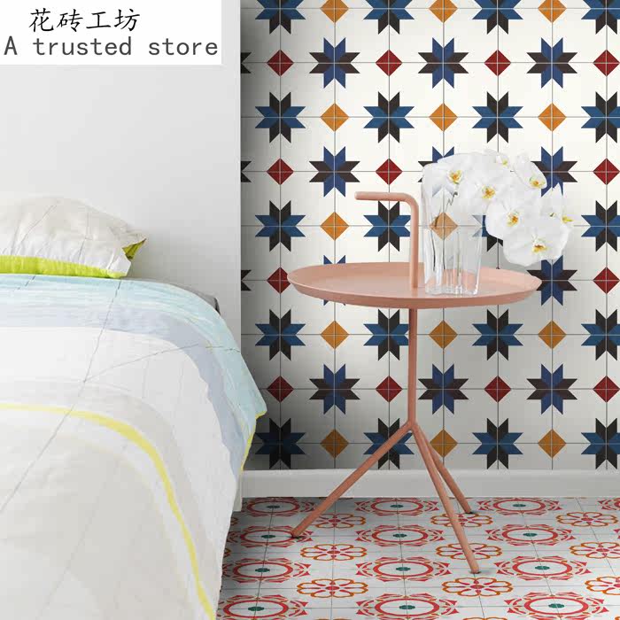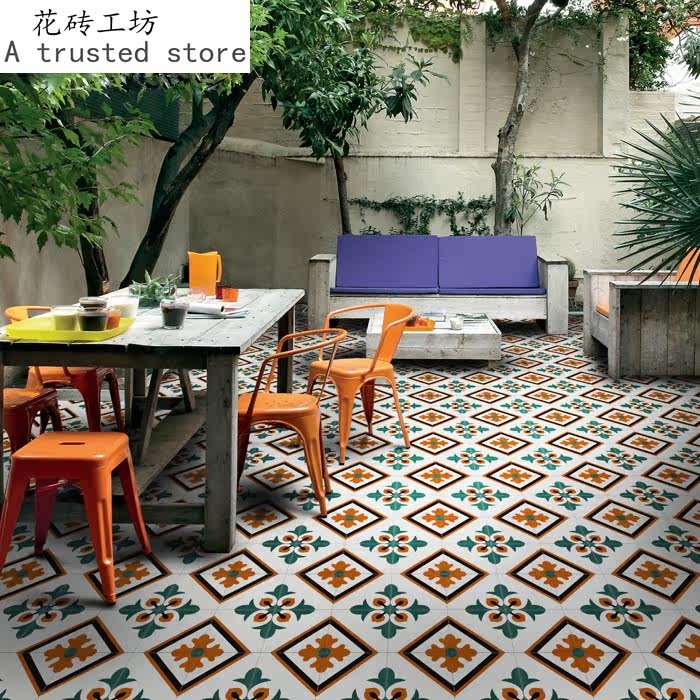 Spanish art flower brick 200 tile floor brick imitation ancient living room balcony anti-slip floor tile cement small flower brick
