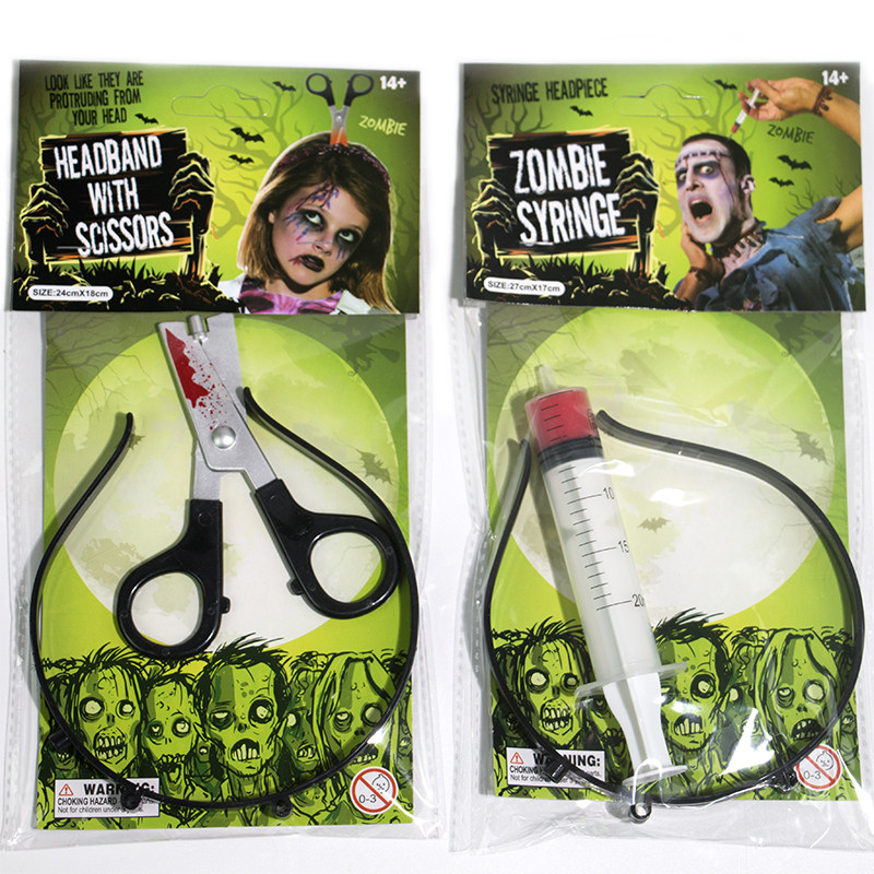 Halloween whole people all people props terror Scissors Syringe hair stirruple Adult children Costume Costume to blame for the funny and funny