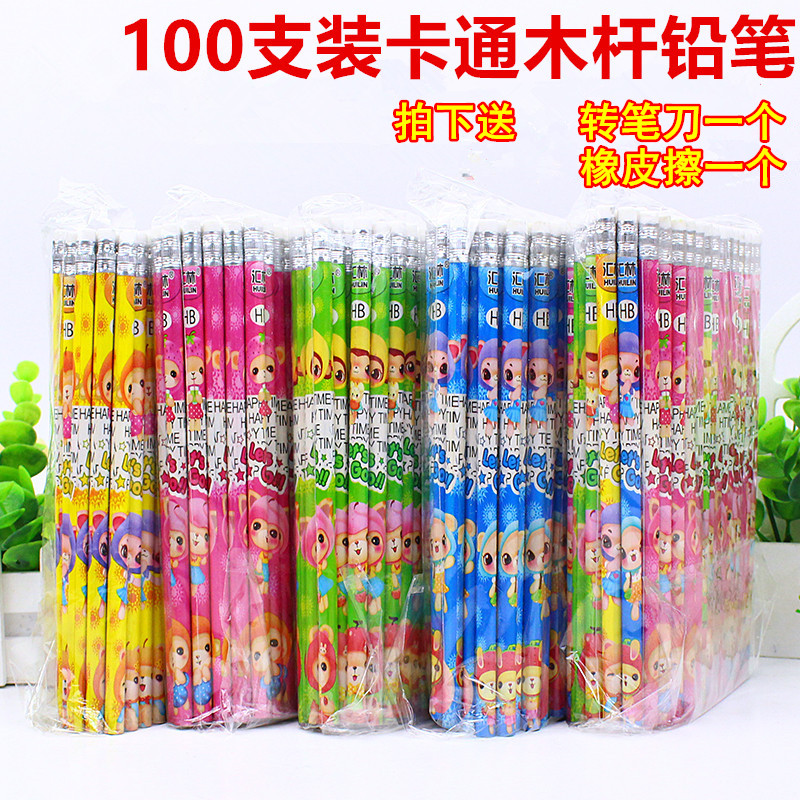 Primary students pencil non - toxic HB sketch pencil log cartoon pencil children stationery prize 100 package