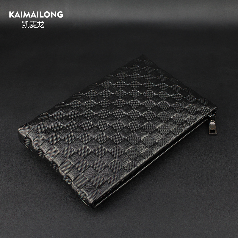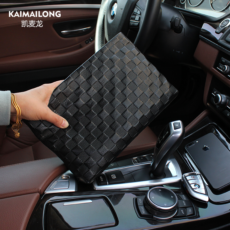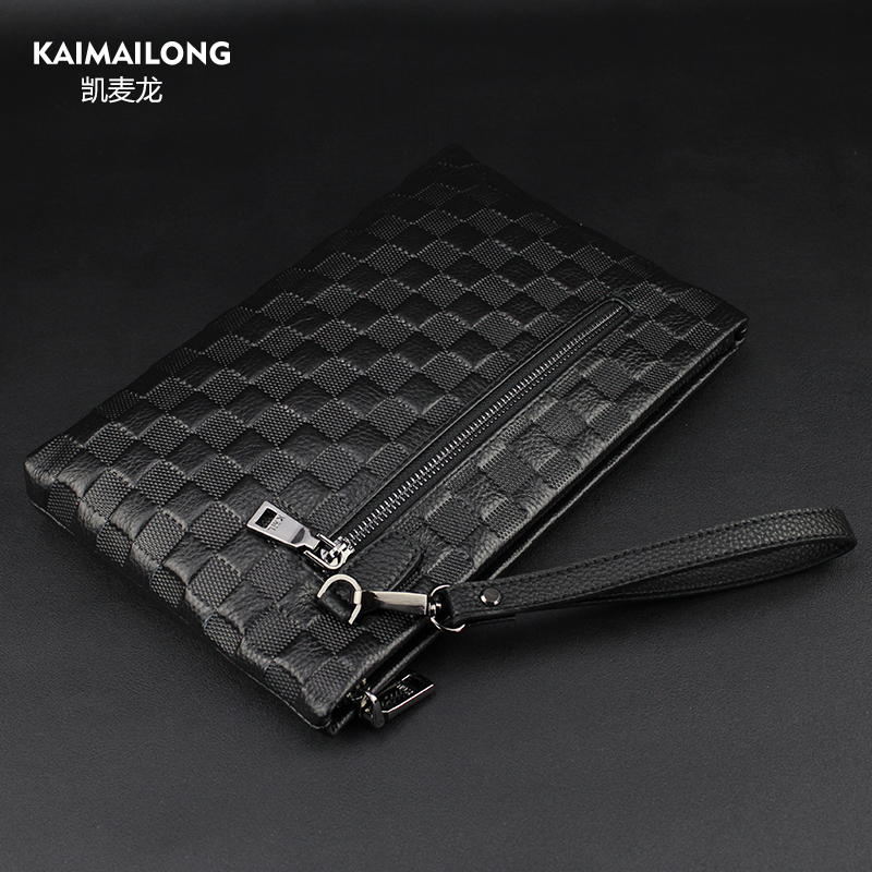 Kemailong men's clutch large capacity leather handbag Men's head layer soft cowhide business casual clip bag men's bag