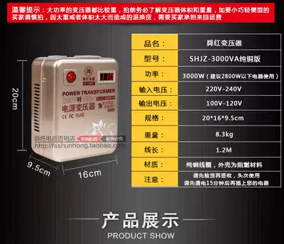 3000W domestic use (220V to 110V)3000W foreign use (110V to 220V)3000W domestic use (220V to 100V)