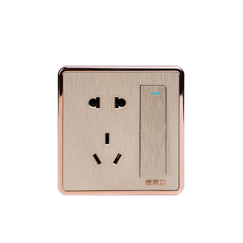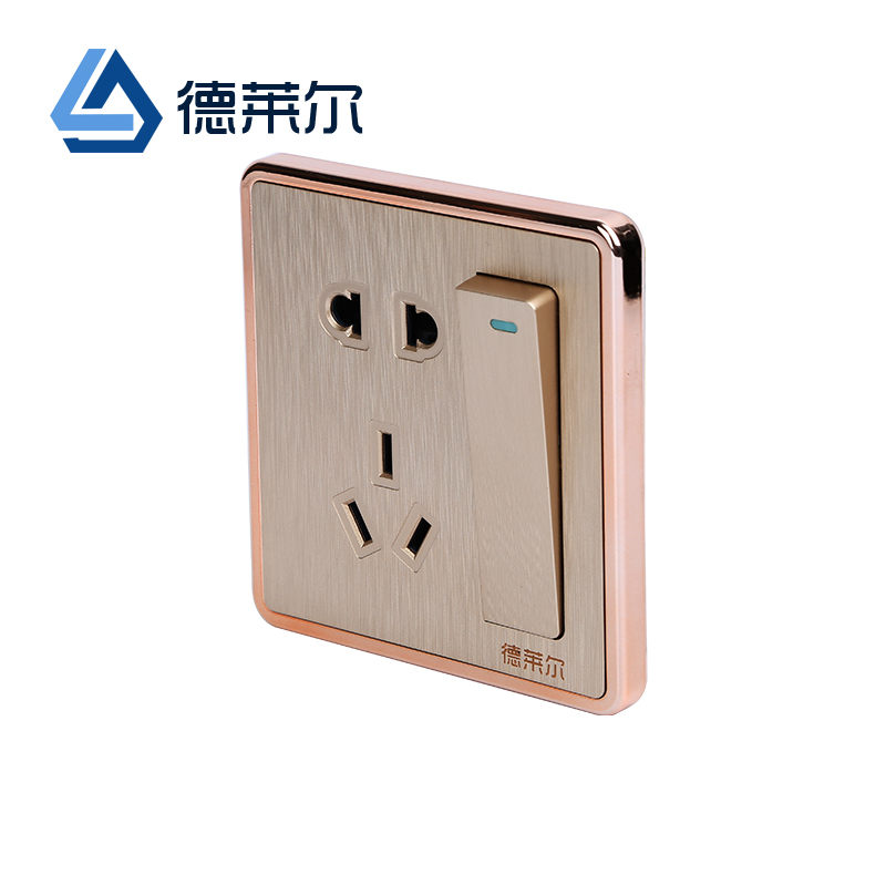 Delaire Switch Socket Large Plate Wire Drawing Gold Open Five Holes Socket Panel One Switch Double With Five Holes Socket