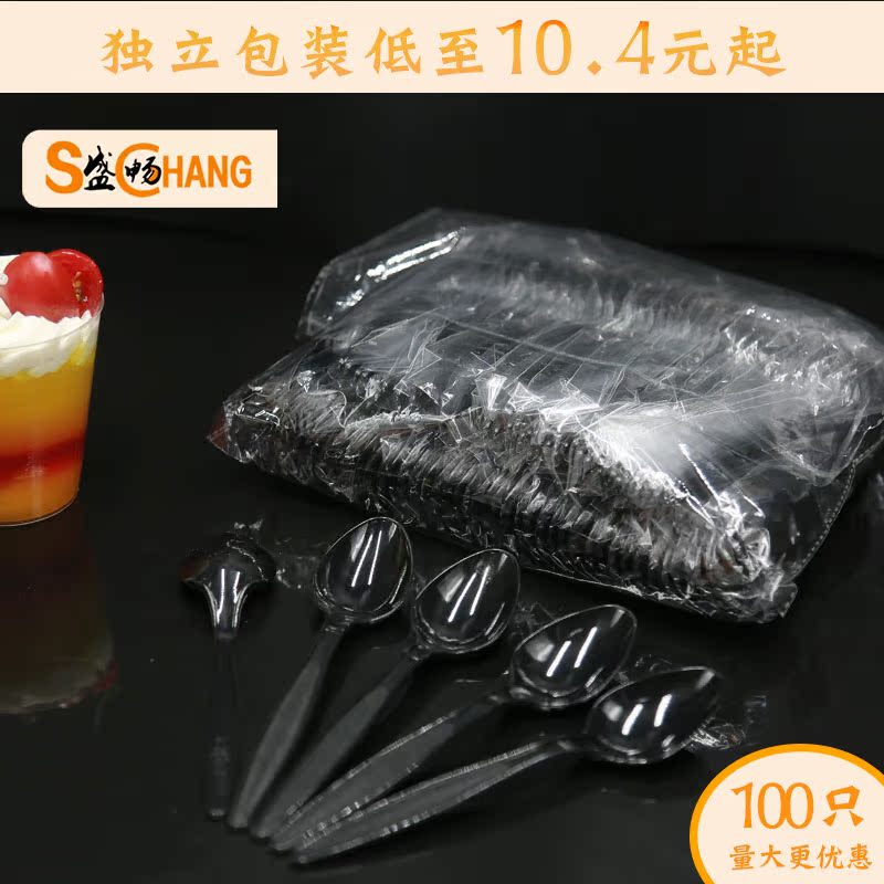 Sheng Beston Disposable Plastic Spoon Independent Packaging Black Rice Spoon With Round Head Sweet Spoonful Spoon for outside delivery cutlery