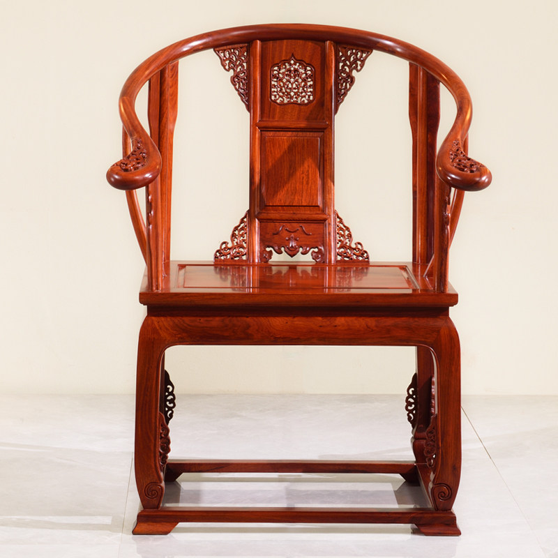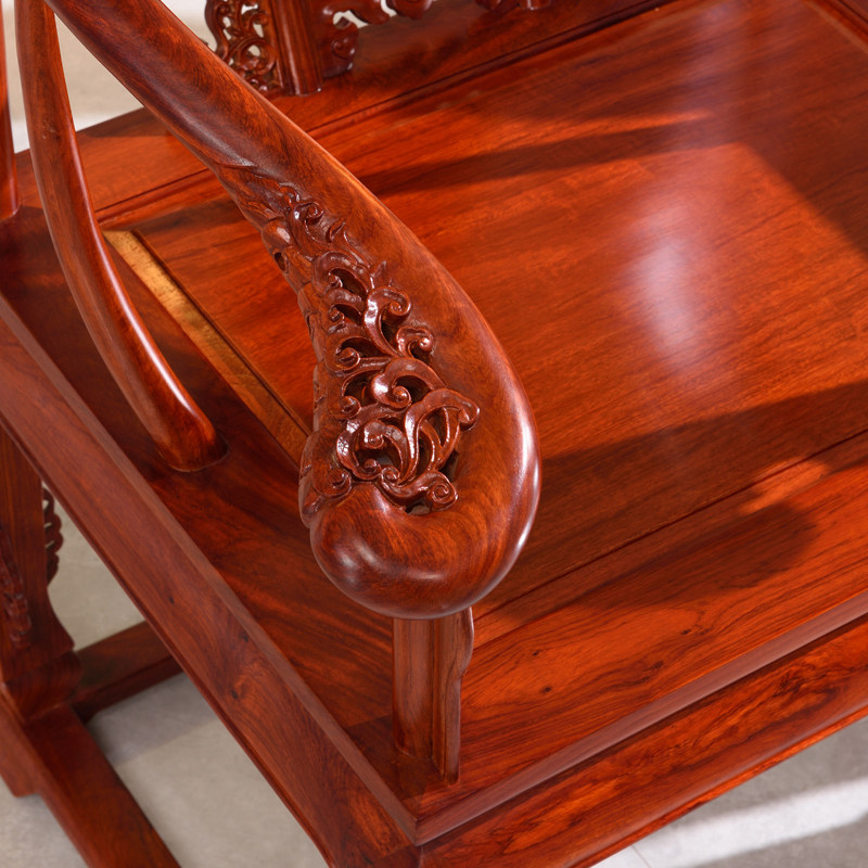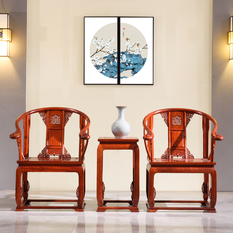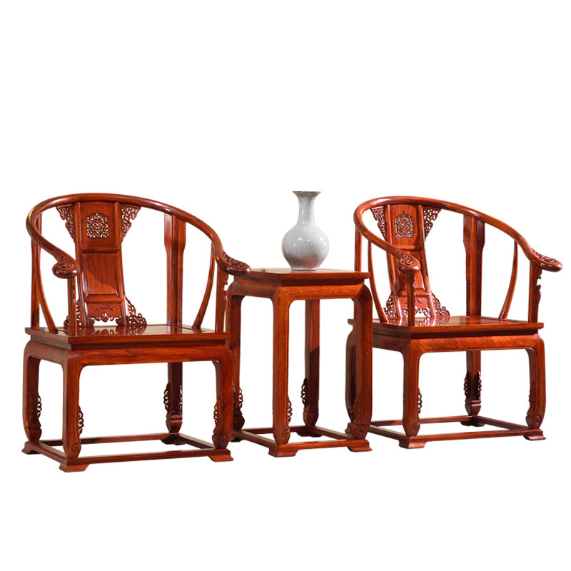 Mahogany furniture Burmese rosewood circle chair Taishi chair big fruit red sandalwood Chinese style solid wood tea chair palace chair three-piece set