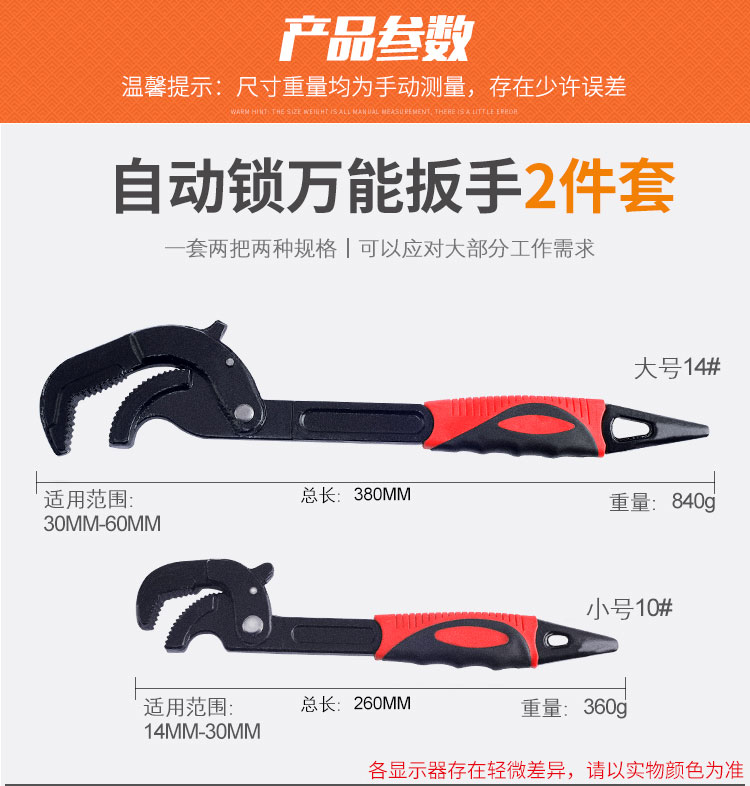 Small number one (grip 14-30mm) large number one (grip 30-60mm) a set of two pass (each one in size) black universal wrench one (8-42mm) light almighty