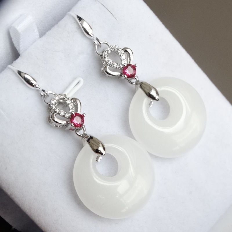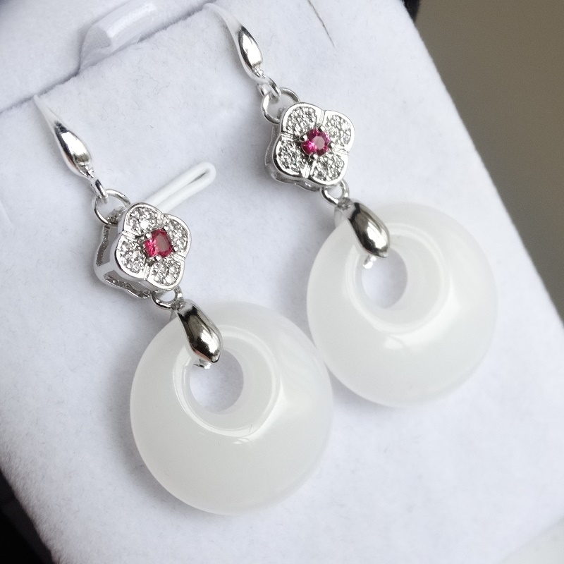 White Jade Green buckle earbuds white jade black jade beads in white jade red jade beads in white jade red jade beads in white jade red jade beads lucky flower white jade green buckle earbuds with white jade green buckle pendant for 925 chain 1 white jewel 4-leaf straw white jade green