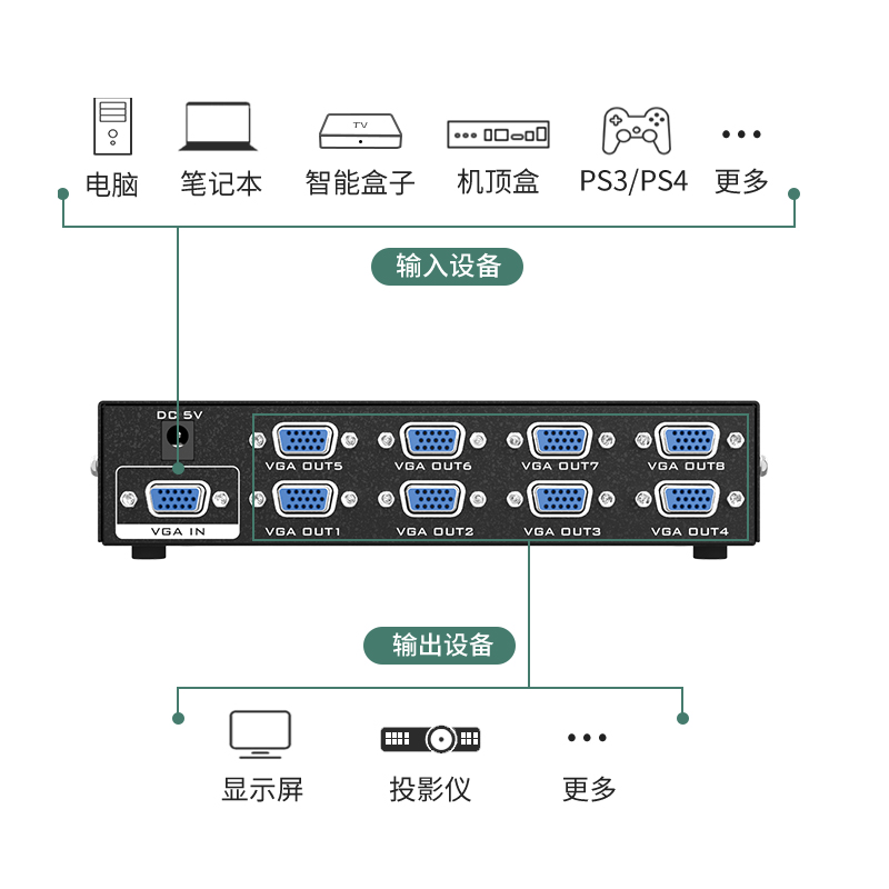 Maxtor dimension moment MT-3508 HD 8-port VGA splitter Computer connected to the TV projector engineering grade