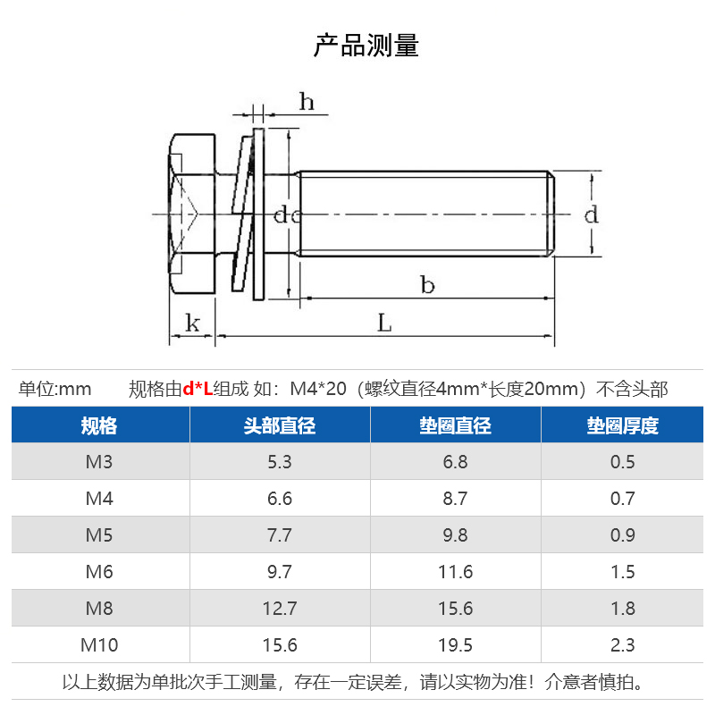 M4 M5 304 stainless steel outer hexagonal three combination screw cross hexagonal combination screw*8-10-20-25