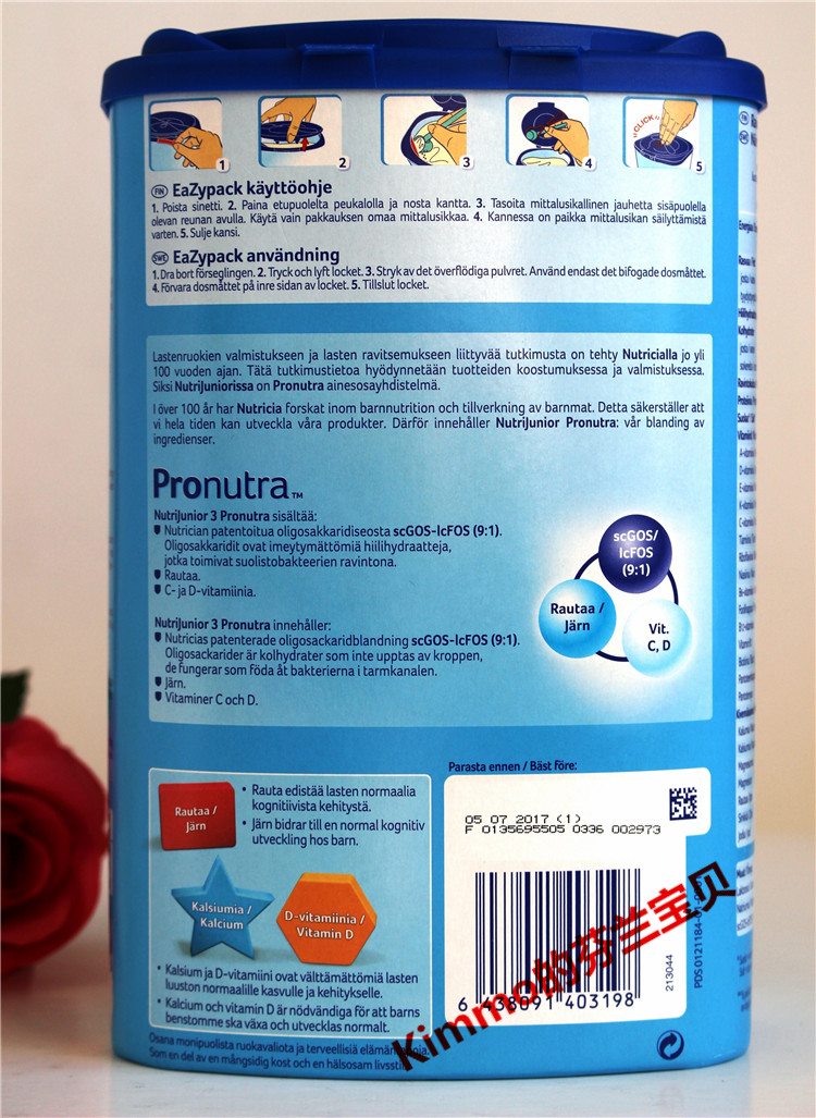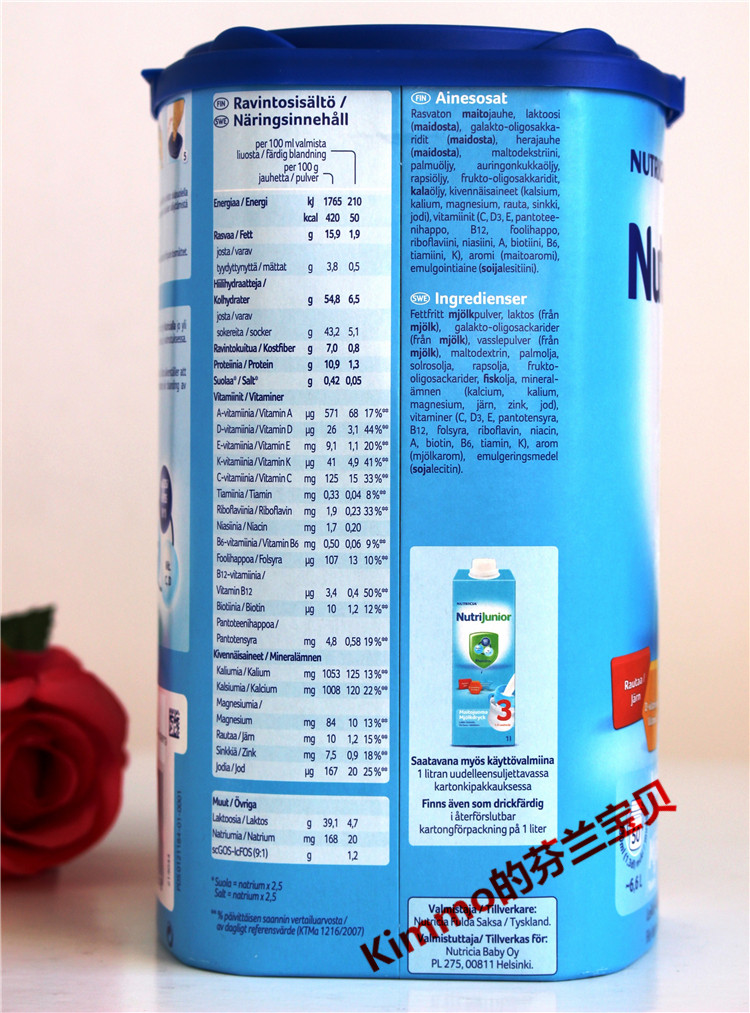 Finnish original bullpen Junior3 segment canned 800g 1-3 years old spot infant milk powder non-Dutch