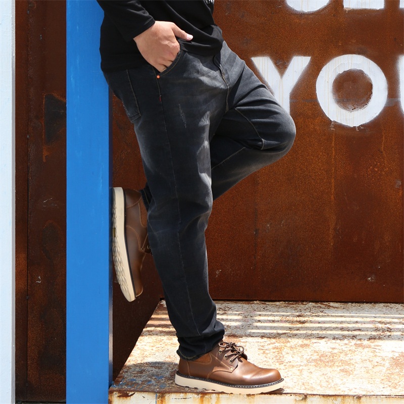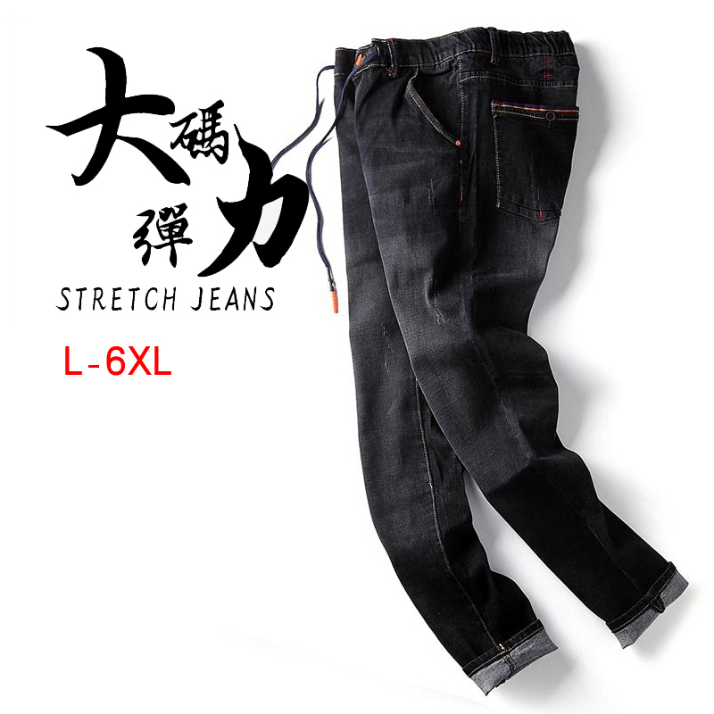 Elastic Denim Long Pants Spring Autumn Season Gats Up Overweight Overweight Son Fats Loose Pants Men's Korean Version Trendy Jeans