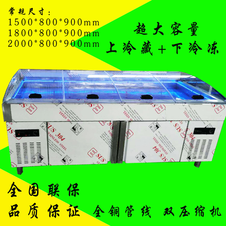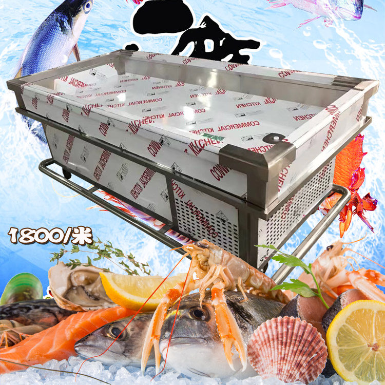 Ice Cross-Straits Fresh Vegetable Pint Stainless Steel Commercial Display Cabinet Aquatic Fish Meat Frozen Refrigerated Cabinet Point Vegetable Cabinet Refreshment Cabinet