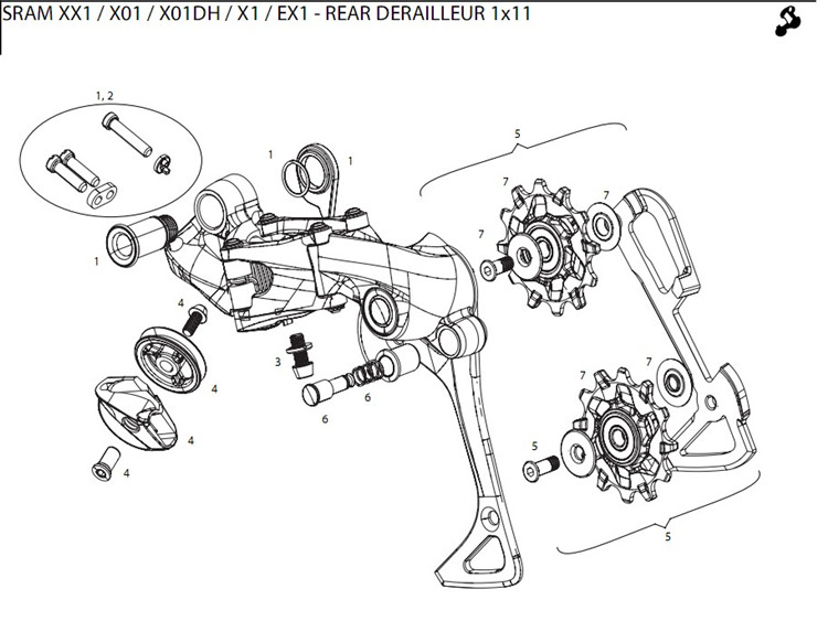 Original SRAM XX1 RD rear derailleur fastening screw repair kit