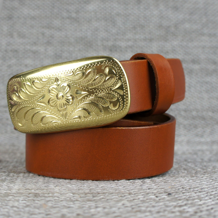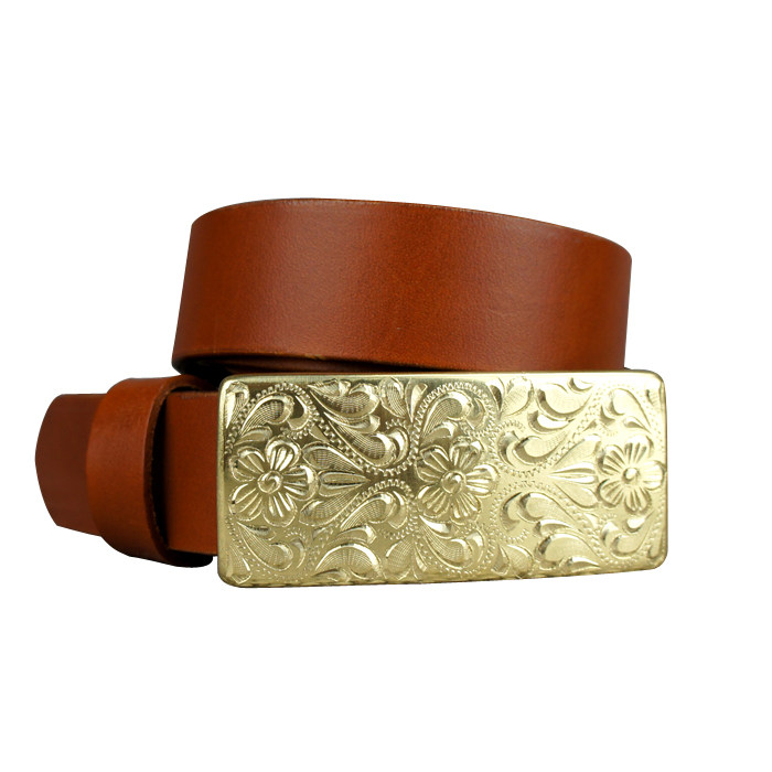 Zhang Kee Workshop Leather Girl Bull Leather Leather Belt Italy Plant Tanning Leather Belt Pure Copper Hand Chisel Carving Pants Strap
