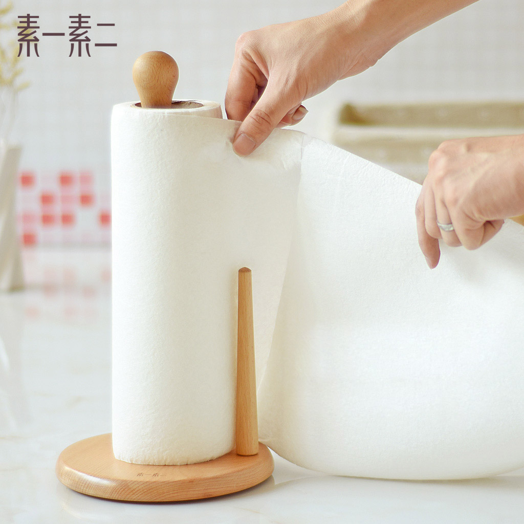 Su Yi Su Two Beech Wood European Style Kitchen Paper Towel Rack Creative Non-Polluting Oil Roll Paper Rack Vertical Paper Towel Stand No Punching