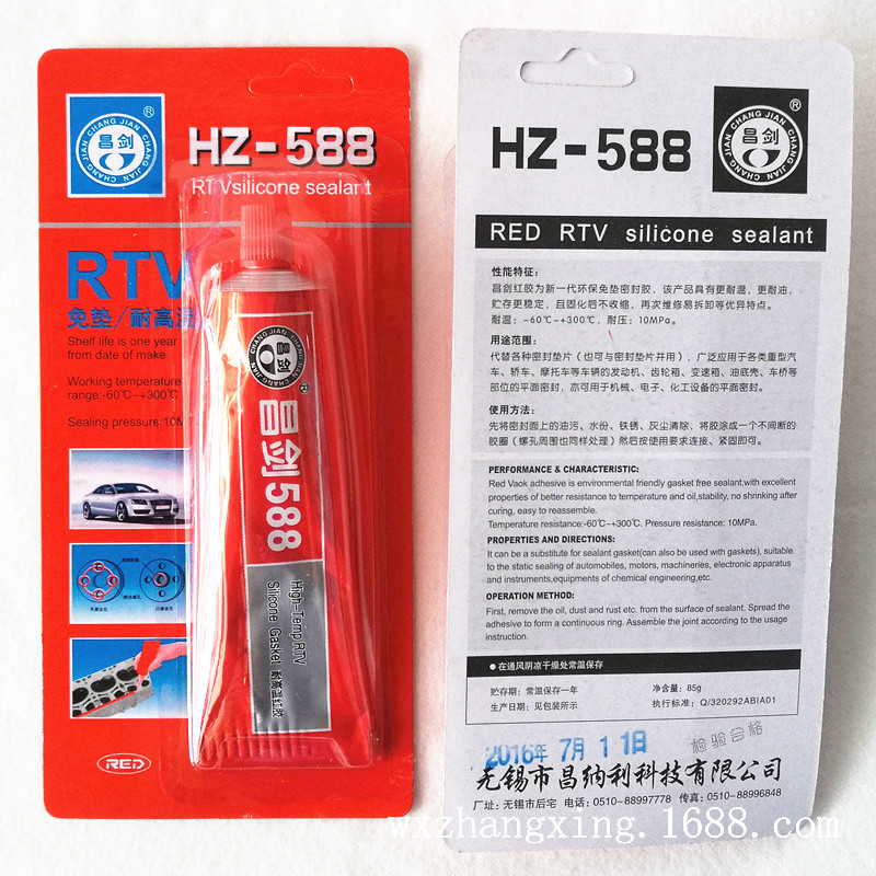Changjian HZ-588 sealant red rubber RTV silicone cushion resistant to high temperature resistant sealant engine seal 85g